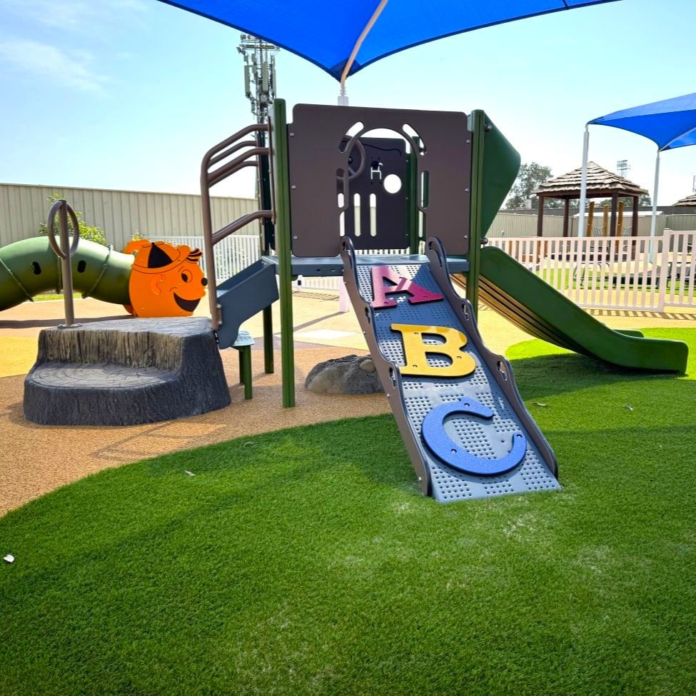 Along with the sturdy Landscape Structures play units, custom GFRC products, shade and TPV surfacing being integrated with Synthetic Grass, a stunning result has been achieved for this five start early learning facility.