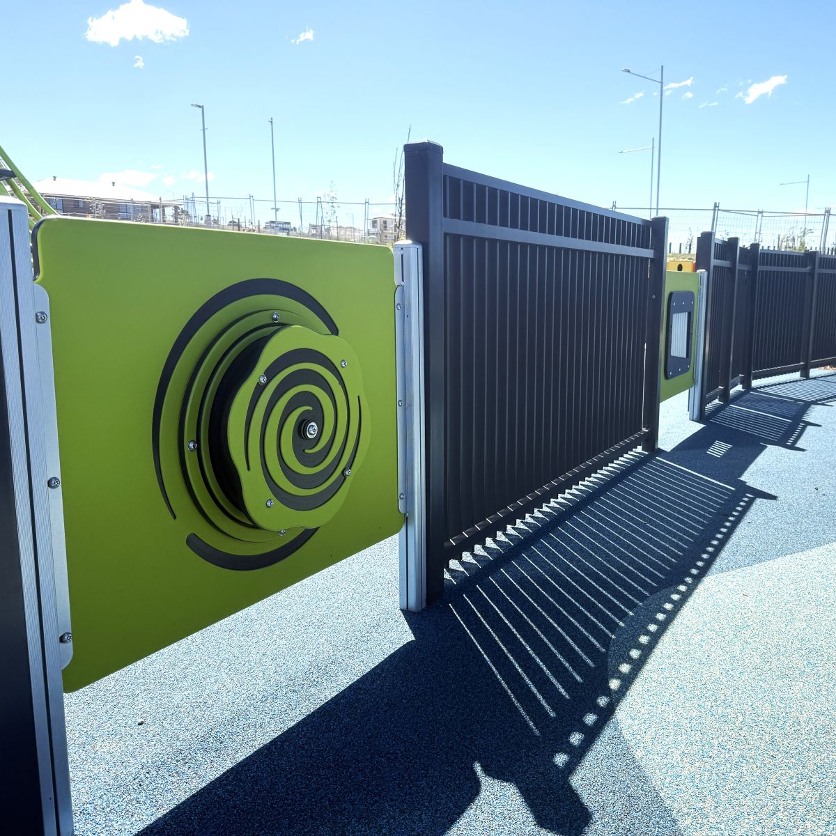 Greenway Plaza is a bustling local centre filled with lots of food outlets, fashion stores and gyms. Many patrons spend hours and an outdoor play area was desperately needed but space was limited. Our Alpha Tower was the impact feature that fit that the bill perfectly! It’s 6m height can be seen from throughout the centre and it’s compact size packed with lots of activities has become an extremely popular area for parents to chill out with a coffee while the kids enjoy the area. Complimented with some Playshaper Sensory Wall Panels, a funky custom Shade Structure and CSBR Rubber surfacing.