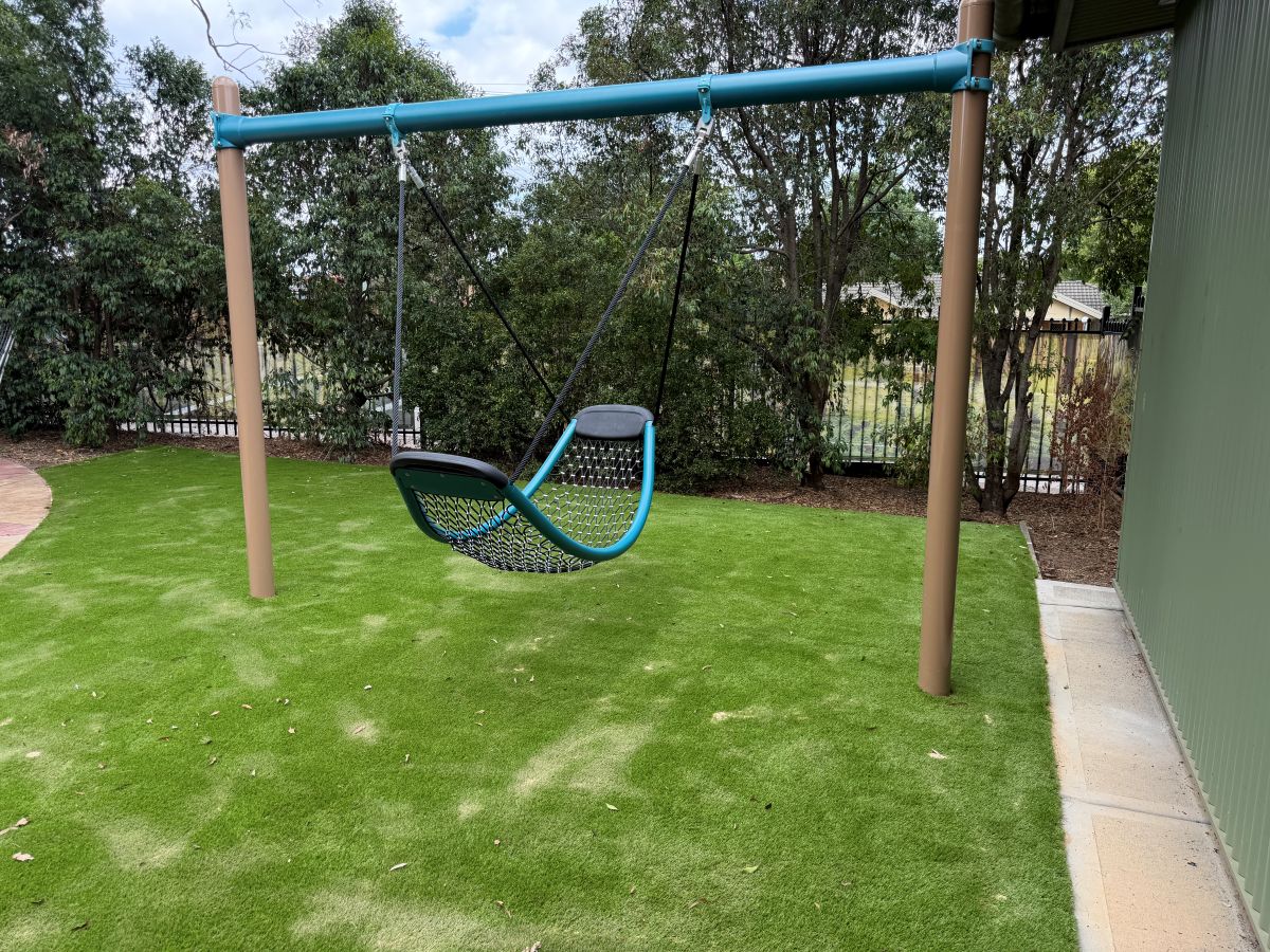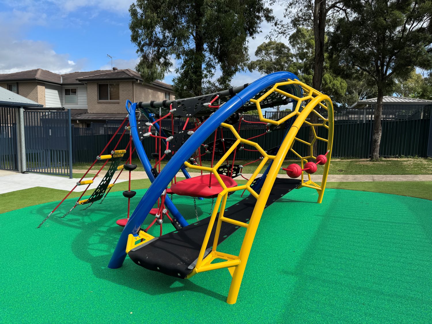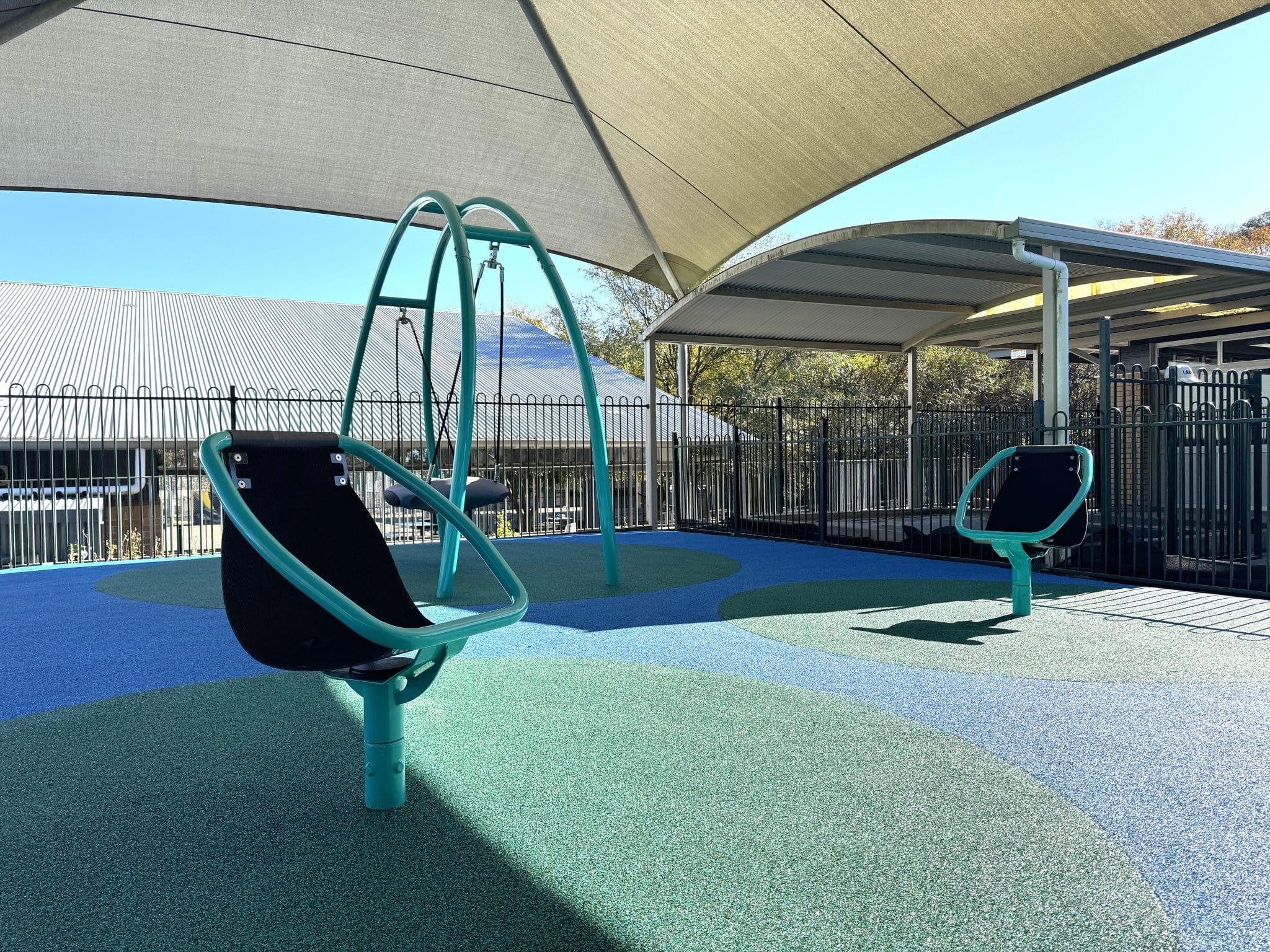 It was a pleasure to work with Blaxland Public School once again to expand their existing play space to include a Wheelchair Accessible Swing. And not just any accessible swing! But the Landscape Structures, We-Go-Swing! Fully wheelchair accessible but also an INCLUSIVE SWING! Meaning all the kids can play together. The swing not only includes a safe space to park a wheelchair but a bench so that friends can swing together and no one is left out.