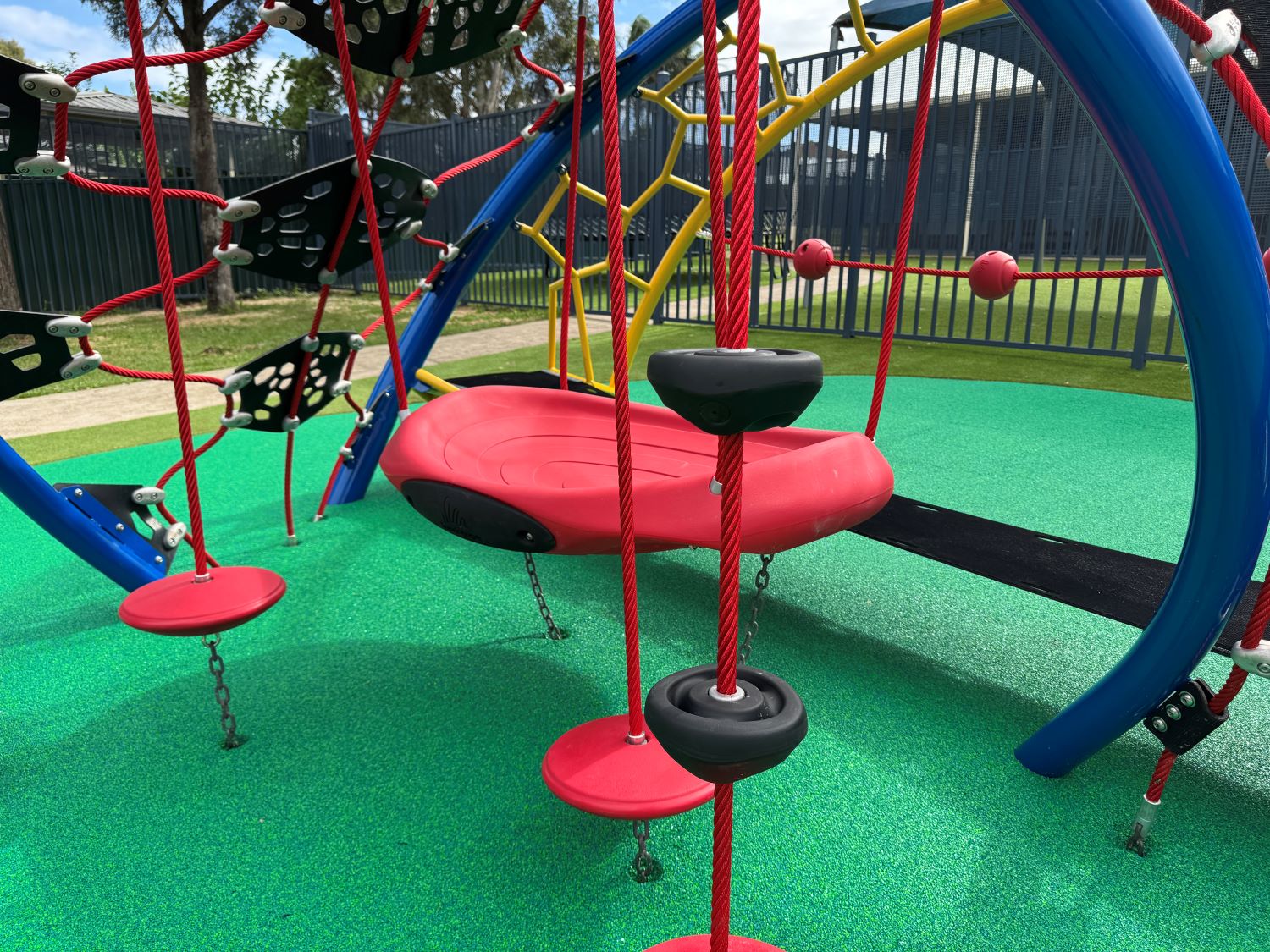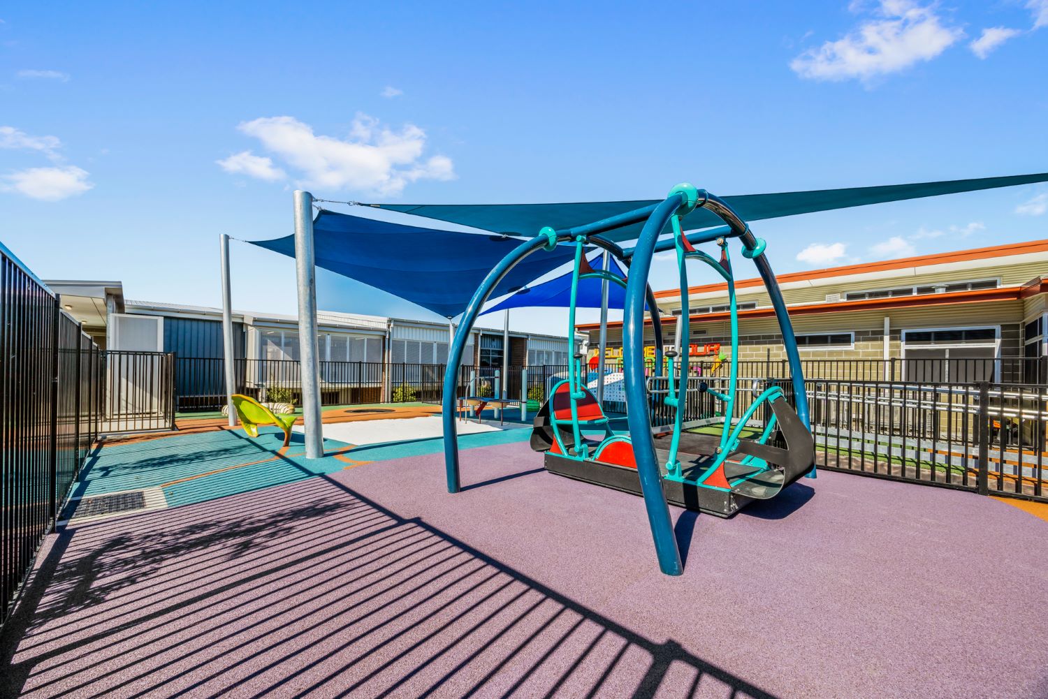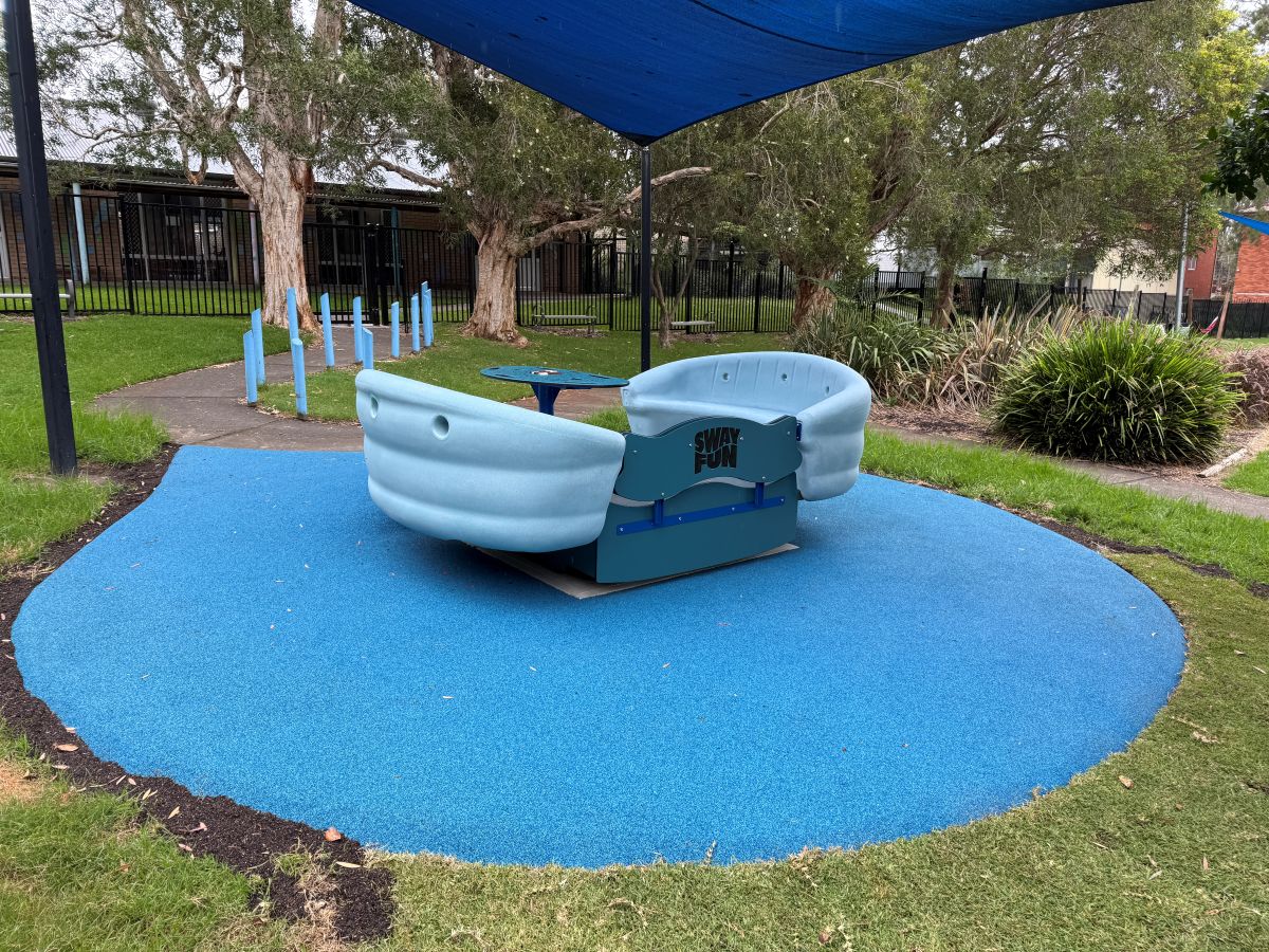 It was a pleasure to work with Blaxland Public School once again to expand their existing play space to include a Wheelchair Accessible Swing. And not just any accessible swing! But the Landscape Structures, We-Go-Swing! Fully wheelchair accessible but also an INCLUSIVE SWING! Meaning all the kids can play together. The swing not only includes a safe space to park a wheelchair but a bench so that friends can swing together and no one is left out.