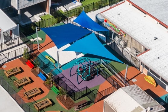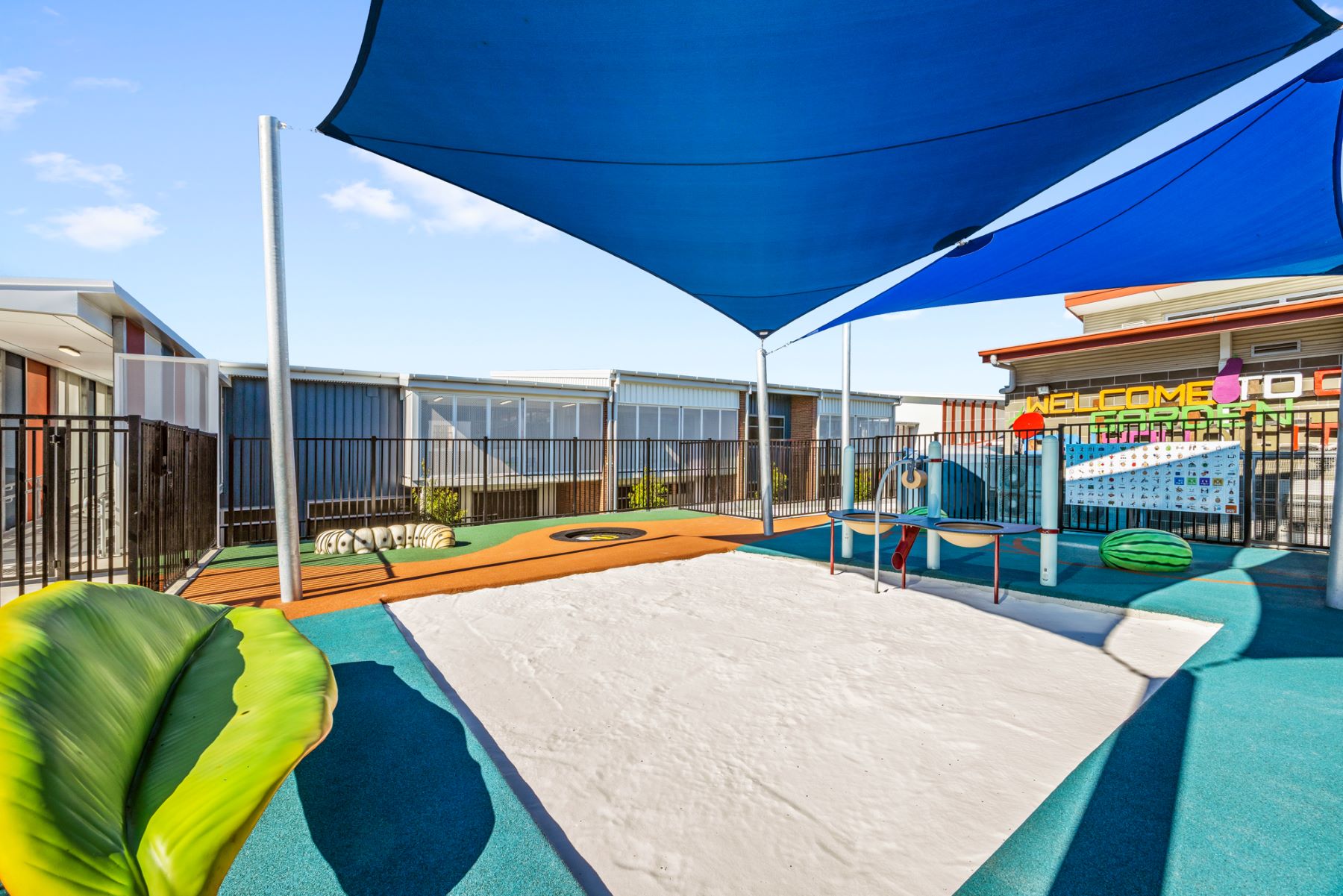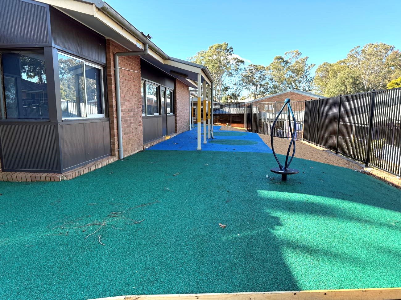 When the word WOW is not enough to explain this transformation! An old dreary undercover COLA area has been transformed into a bright, fun and inviting play space.