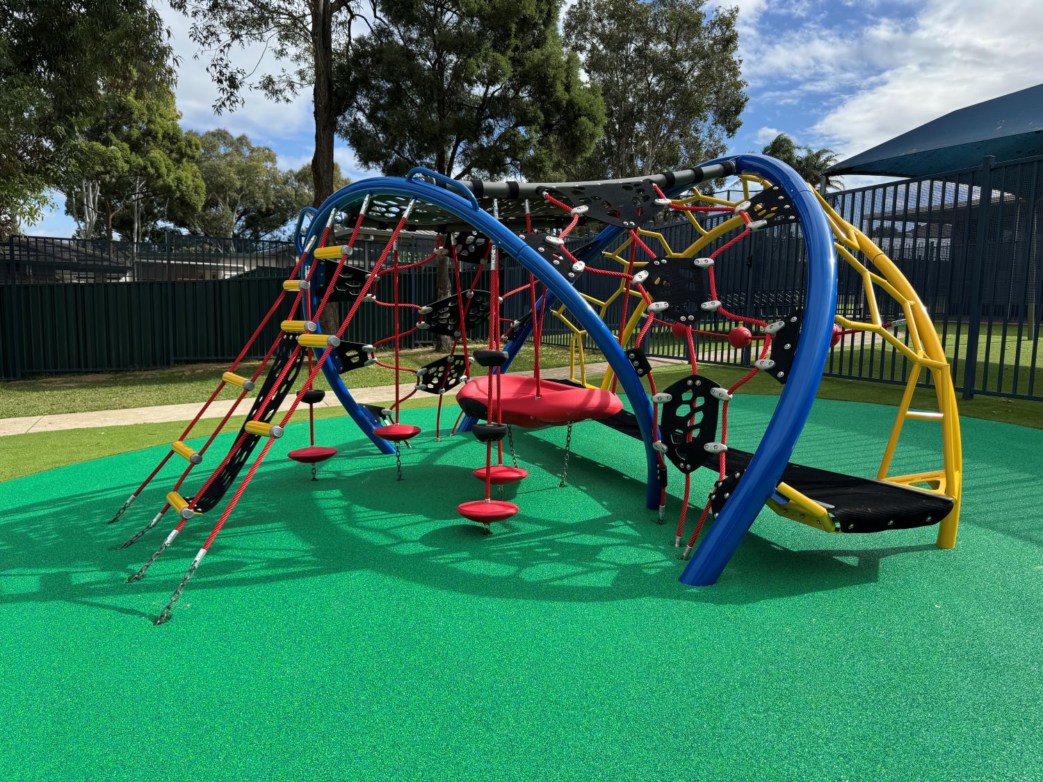 One of our most favourite projects to date. We had the pleasure of building this fantastic, accessible play area for Holroyd School that included a central wheelchair accessible play unit, ground level activities such as musical instruments, water pump/reservoir, spinners and more. Ensuring full accessability, EPDM rubber wetpour surfacing was used to complete the area. The smiles on the kids faces when the project was completed was the best reward and we absolutely loved delivering this project for the school and NSW Infrastructure.