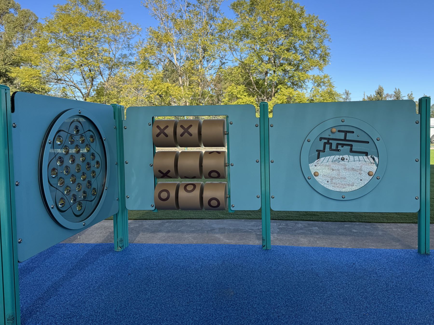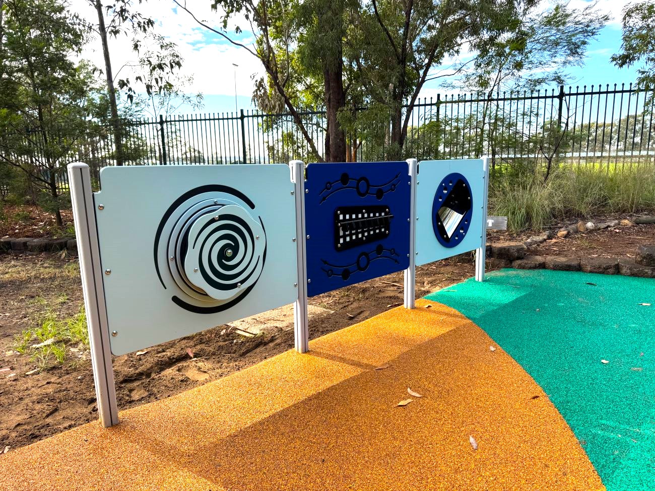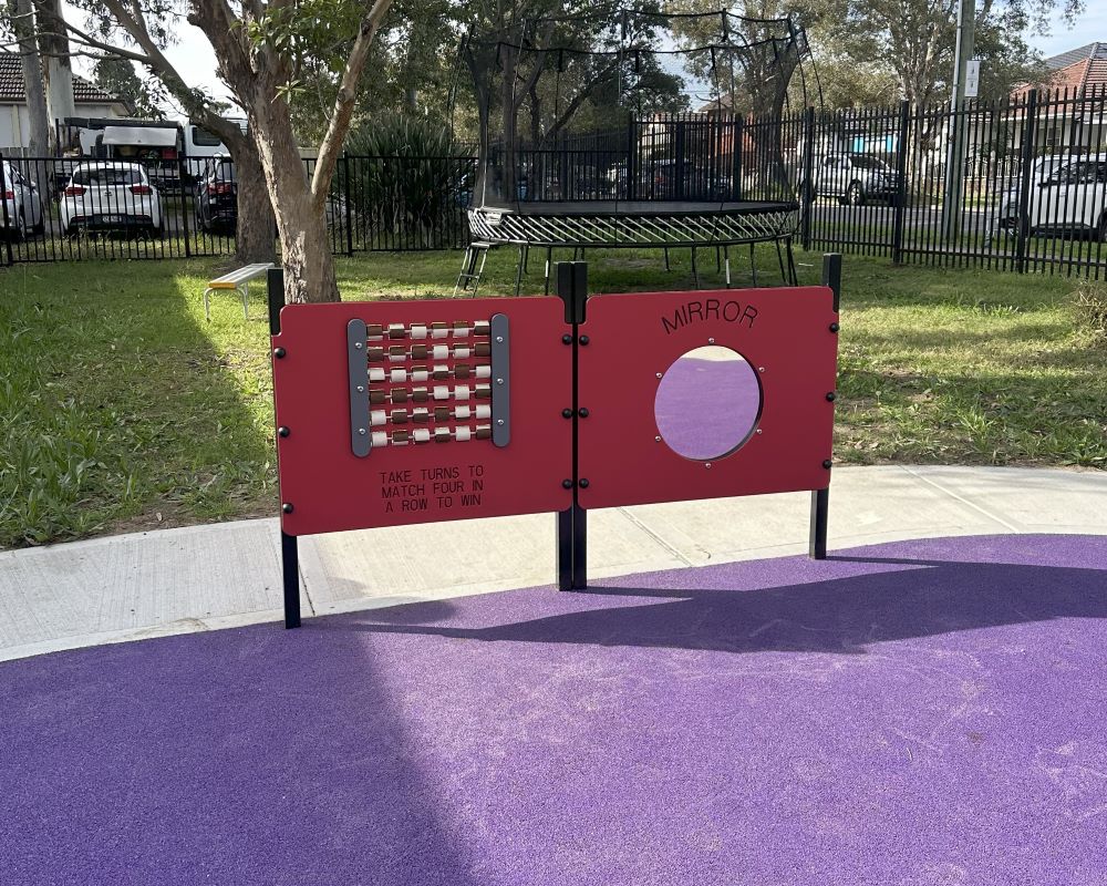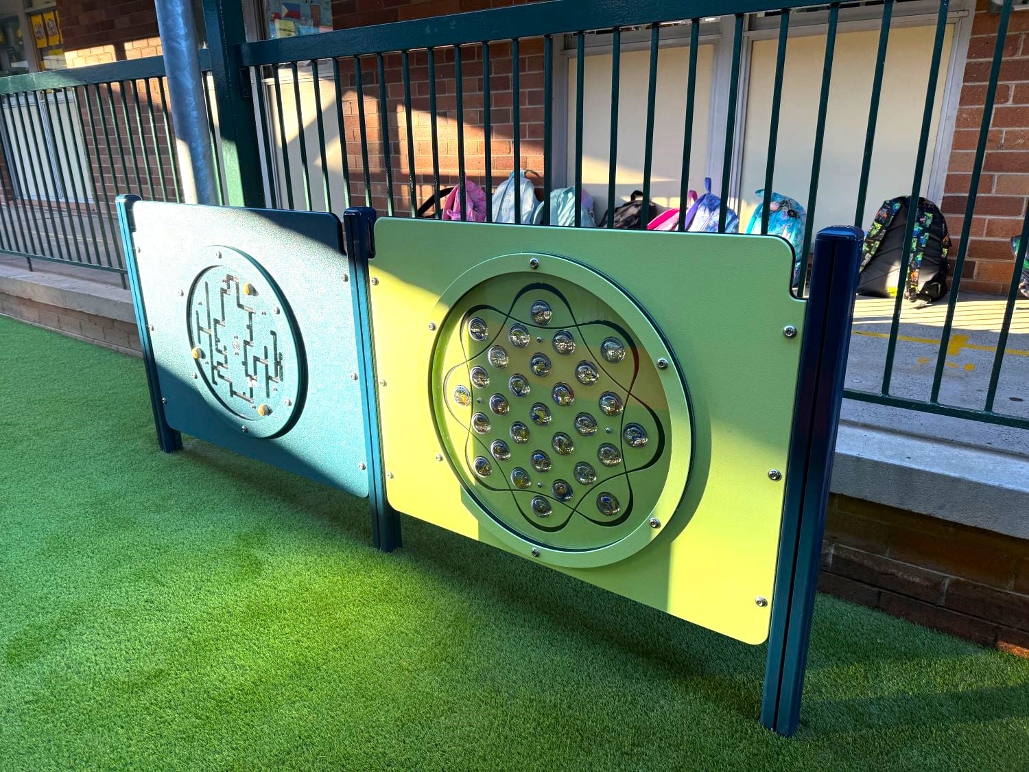 We also added two sensory play panels for the kids to stop along they way of their travels. The two panels, a Match 4 panel and a Mirror panel are both accessible on both sides of the panel. This type of double sided panel is great as it means more activities and more kids being able to engage with the equipment!