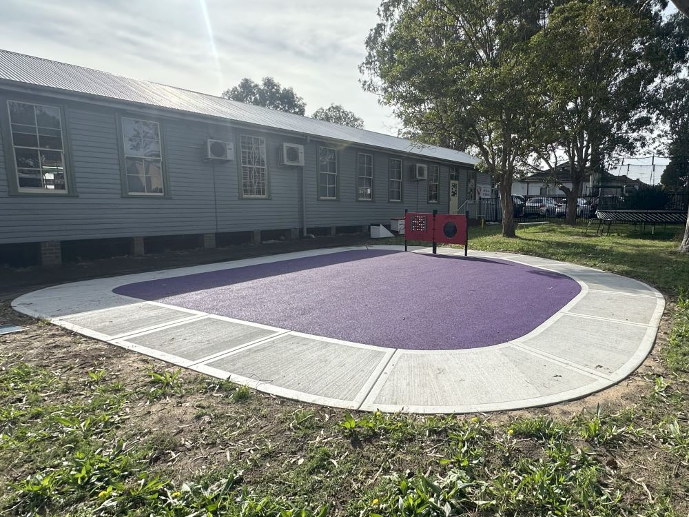 Some times simple things can be most effective! Works carried out in the Support Unit of Yennora Public School included a concrete bike track, inner CSBR Rubber Wetpour surfacing and relocated sandpit panels, shade umbrella and play panels. The kids now have a neat and tidy yard to run around and ride their bikes!
