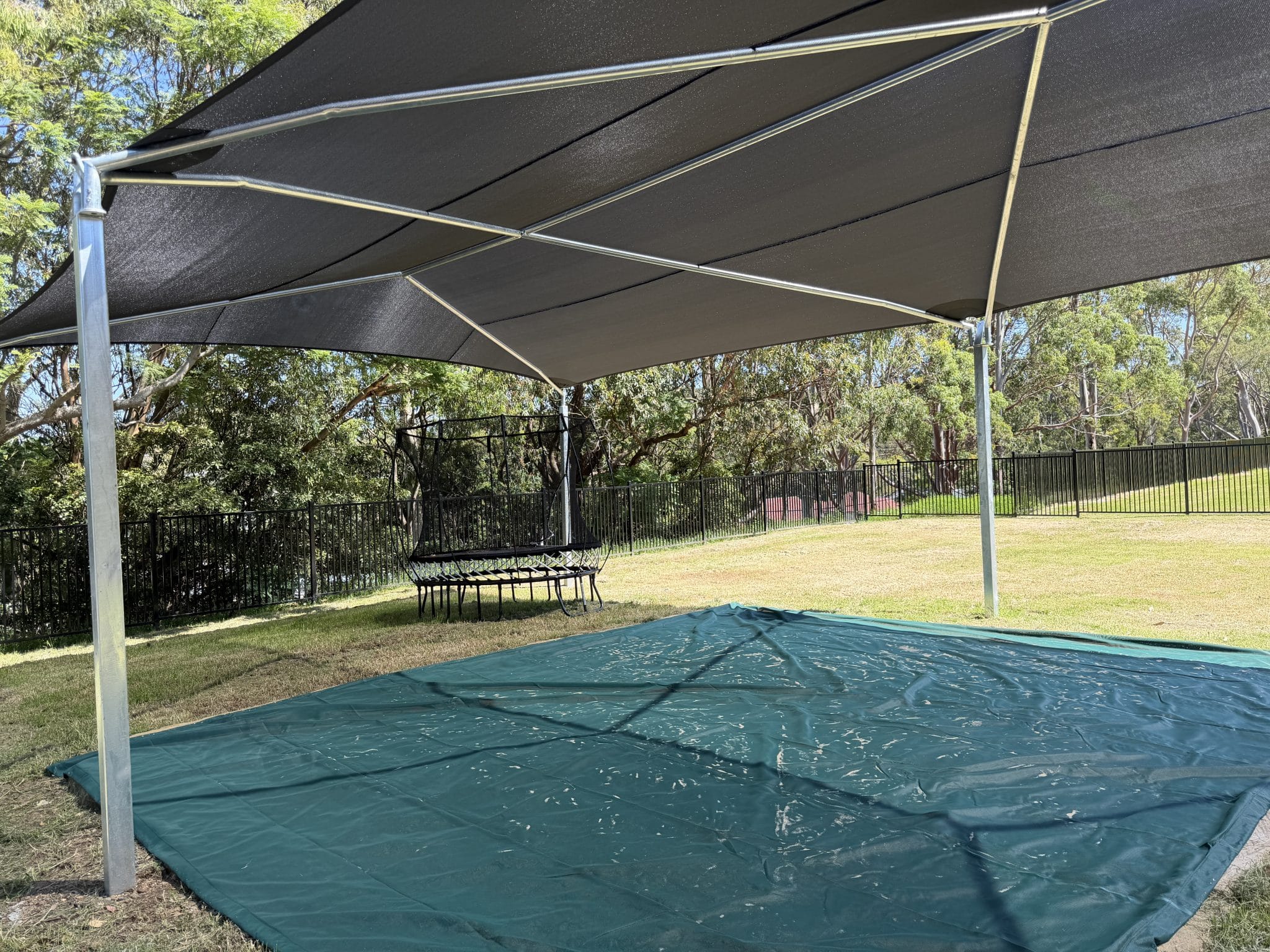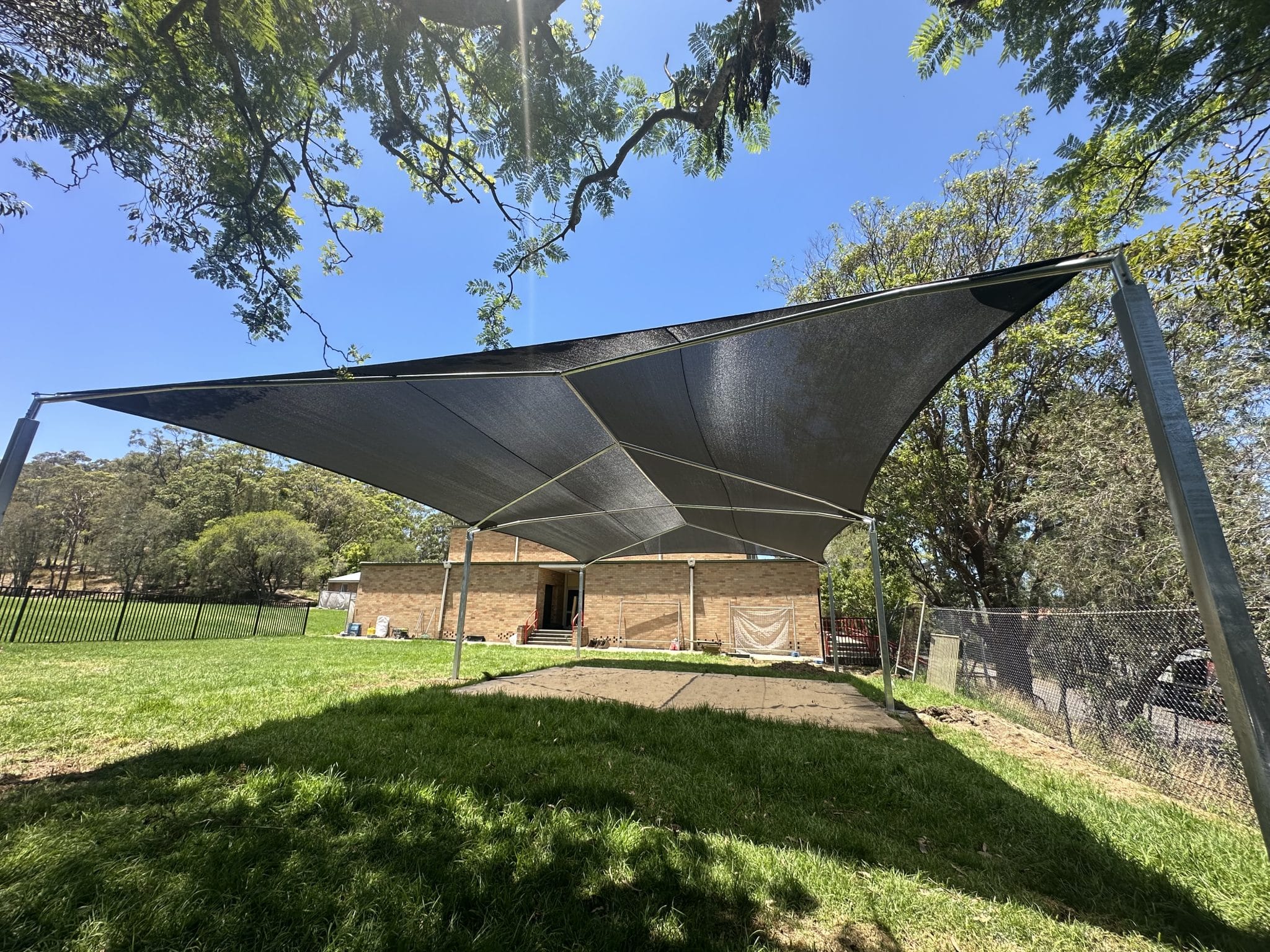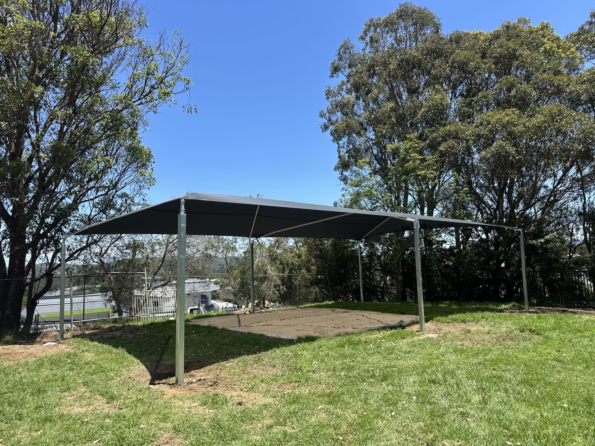 Working with McMahon Building Services, we provided a new shade structure over the sandpit area they had created. To create the span we used a double Hip Roof Shade structure using 6 posts and one complete shade cloth to maximise the shade coverage across the space.