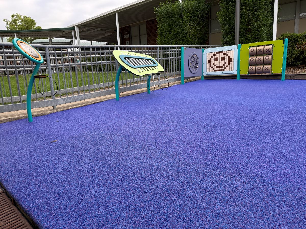 With a mixture of games panels and outdoor musical pieces, the area was completed with EPDM Opal rubber Surfacing.