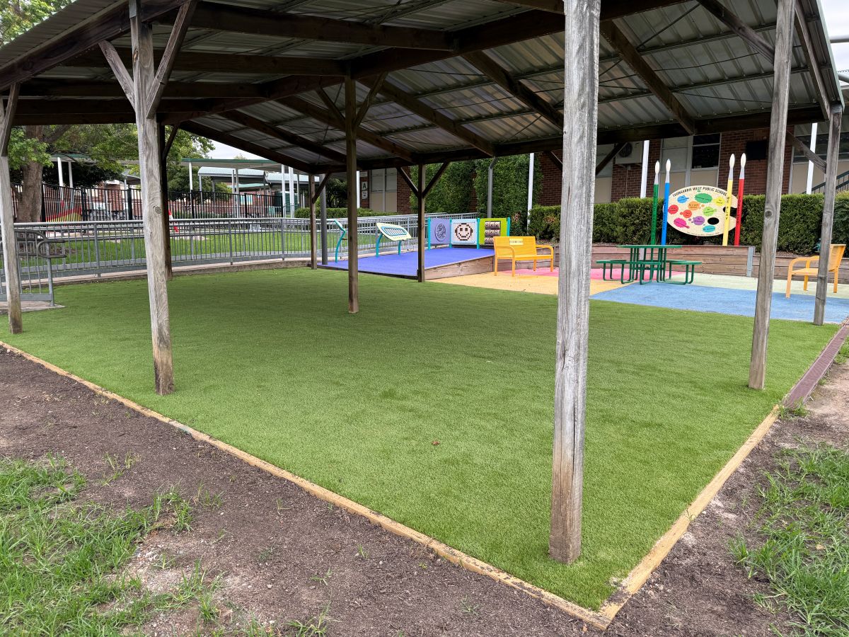 We also upgraded an old timber shelter area next to the sensory play area providing new synthetic grass to give the space a much needed face lift.